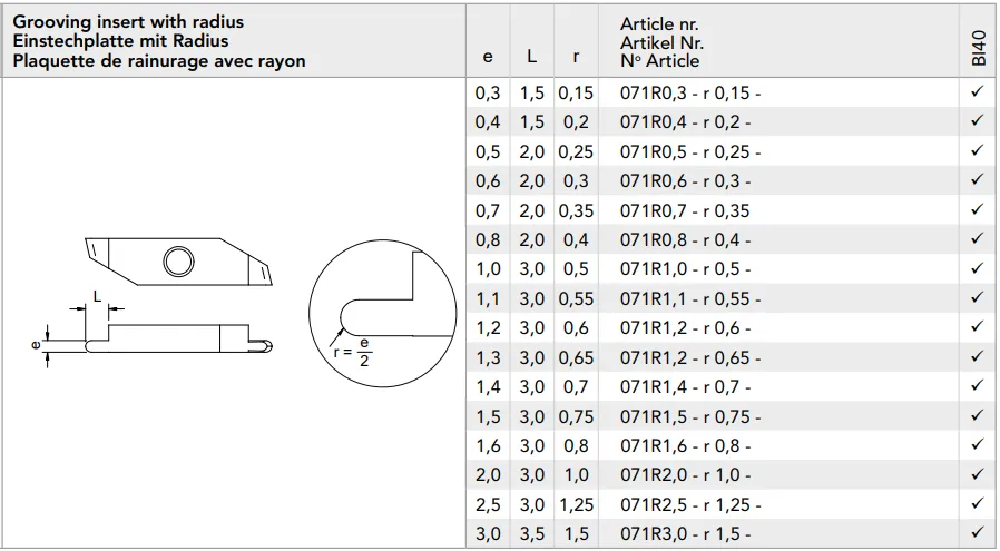 INSERTO PER GOLE A RAGGIO COMPLETO
