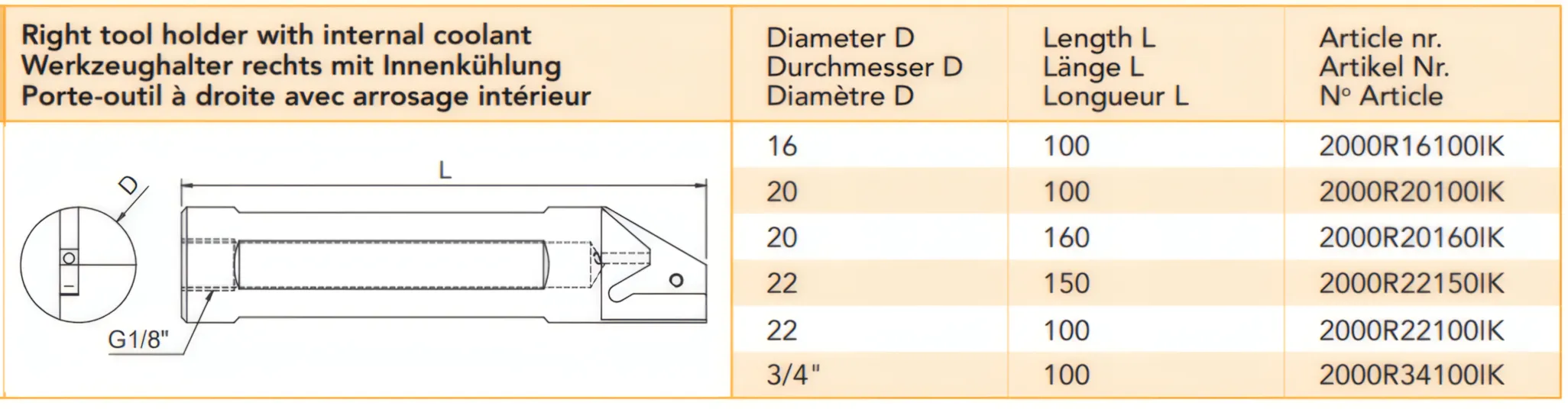 Right tool holder with internal coolant