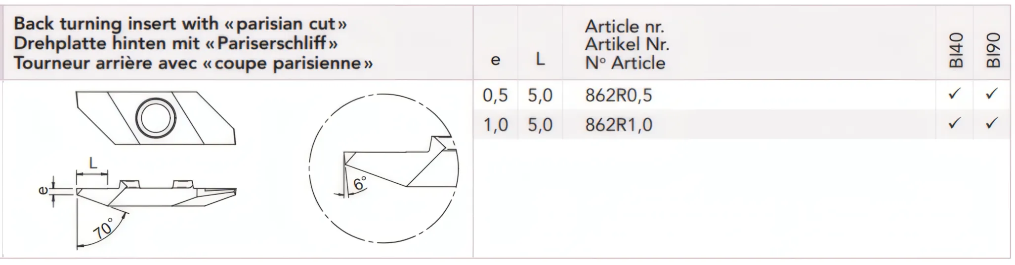 Back turning insert with «parisian cut»
